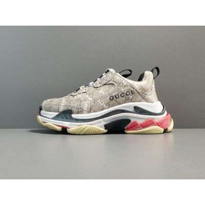 ZH (W) 발렌시아가 x 구찌 해커 프로젝트 트리플 S 스니커즈 베이지 에보니 GG 슈프림 블랙 화이트 레드 677192ULZ109795 > 발렌시아가